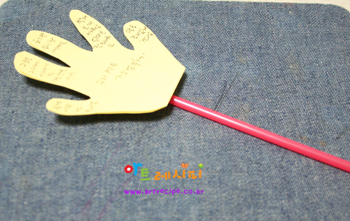 평상시엔 그토록 크게보이던 아이의 단점도 장점에 밀려 아주 작게 보이지요. 그렇게 쓴 손가락 모양 가운데에 빨대를 놓고 다른 쪽 손가락모양을 양면테이프로 붙여주세요 (풀도 가능하지만 나중에 빨대가 빠져나오기도 해요)