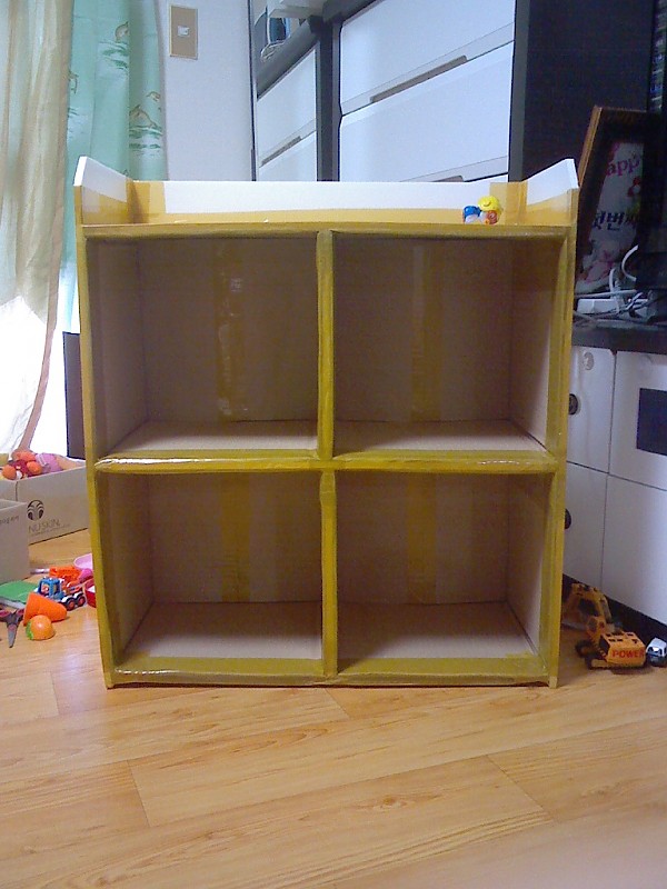 양옆이랑 위, 아래도 붙여주고.. (옆부분 자를때는 조금 길게 자르면 제일 위칸도 쓸수 있어요..) 뒷부분도 약간 높에 붙여주면 끝나요..