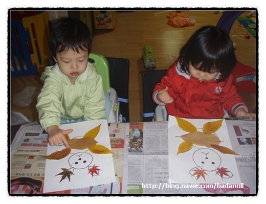 가운데에 양면 테잎을 붙여서 나뭇잎을 붙여봅니다.