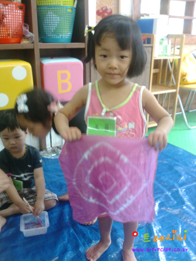 정식으로 보라색을 얻어내기 위해서는 이 과정을 5~6번을 반복해야 하거든요. 한번 정도 염색을 한 경우에는 세탁후에 허망하게도 예쁜 보라색 물이 다 빠져버린답니다. (우리 아이들이 울지도 몰라요.)